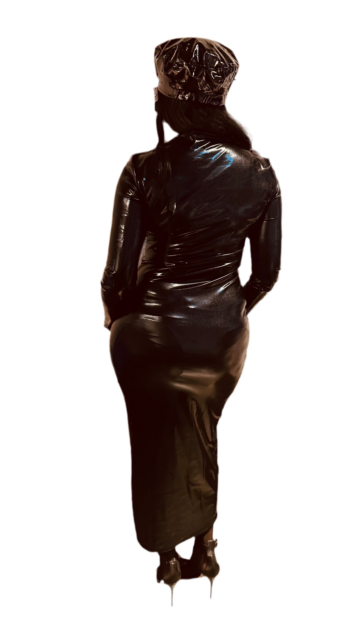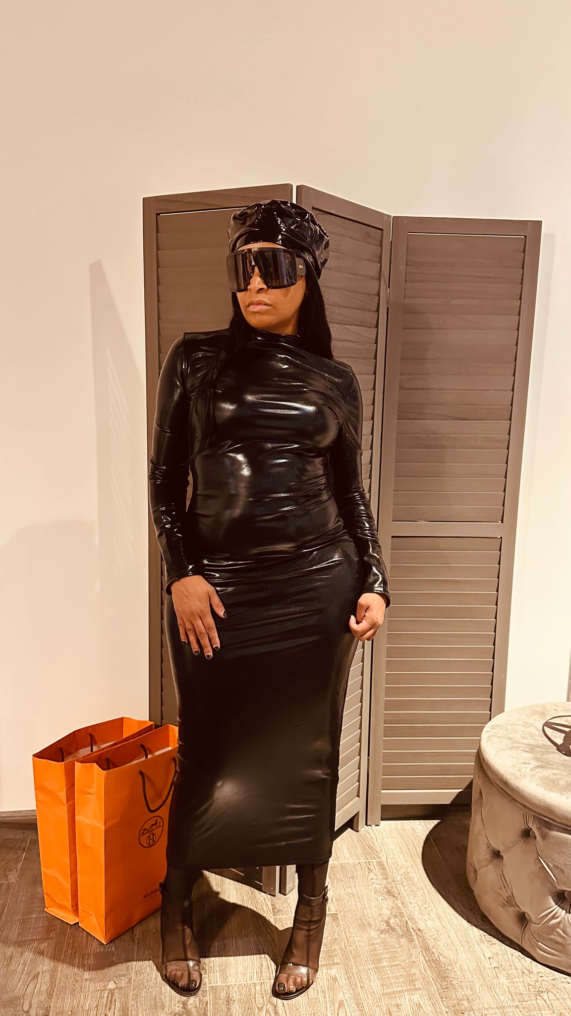 Patent leather stretch dress with very good stretch ankle length with mock neck