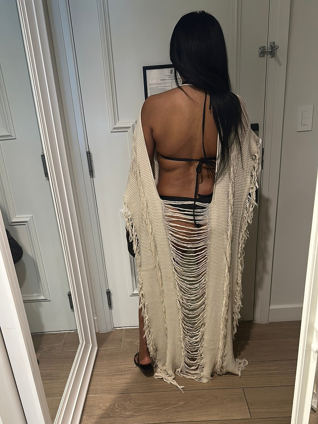 Distressed Drape cover up super long drape look color oatmeal one size fits all